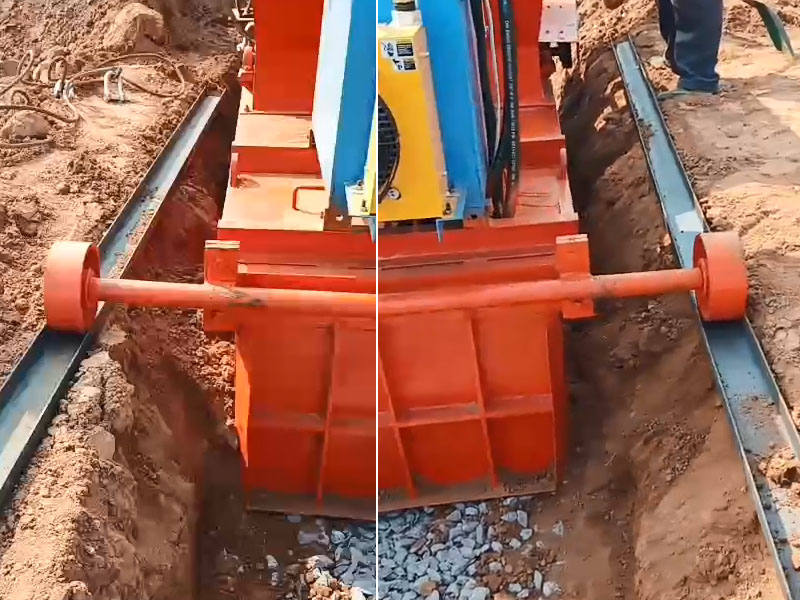 水渠機放入溝模內(nèi),槽鋼輥道已經(jīng)沒有作用了,槽鋼輥道是輔助機器行走直線的。但是這么惡劣的現(xiàn)場,已經(jīng)用不上槽鋼輥道了。在作業(yè)過程中要把槽鋼輥道撤掉。